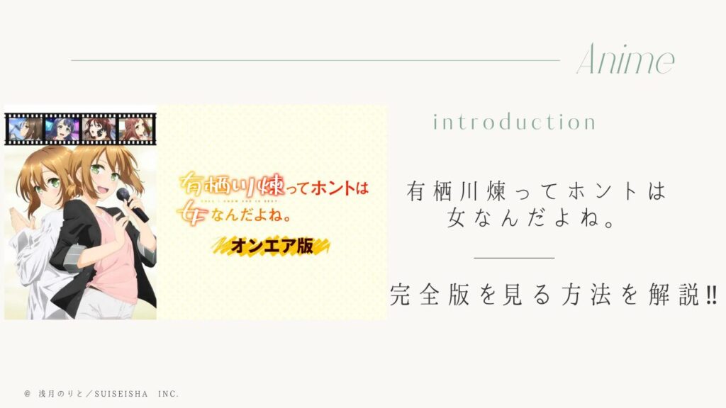 有栖川煉ってホントは女なんだよね。の無修正版(完全版)はどこで見れる?おすすめの配信サービスを紹介!