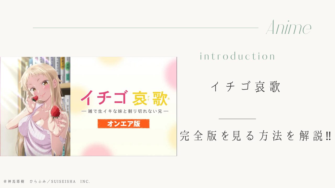 イチゴ哀歌の完全版は『アニメフェスタ』で見ることができます。